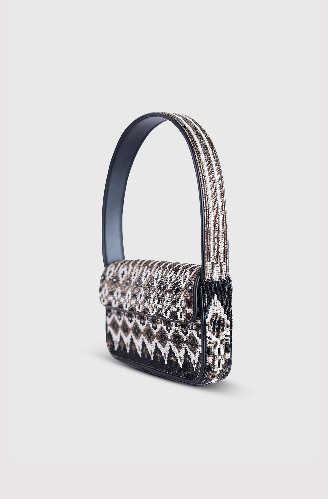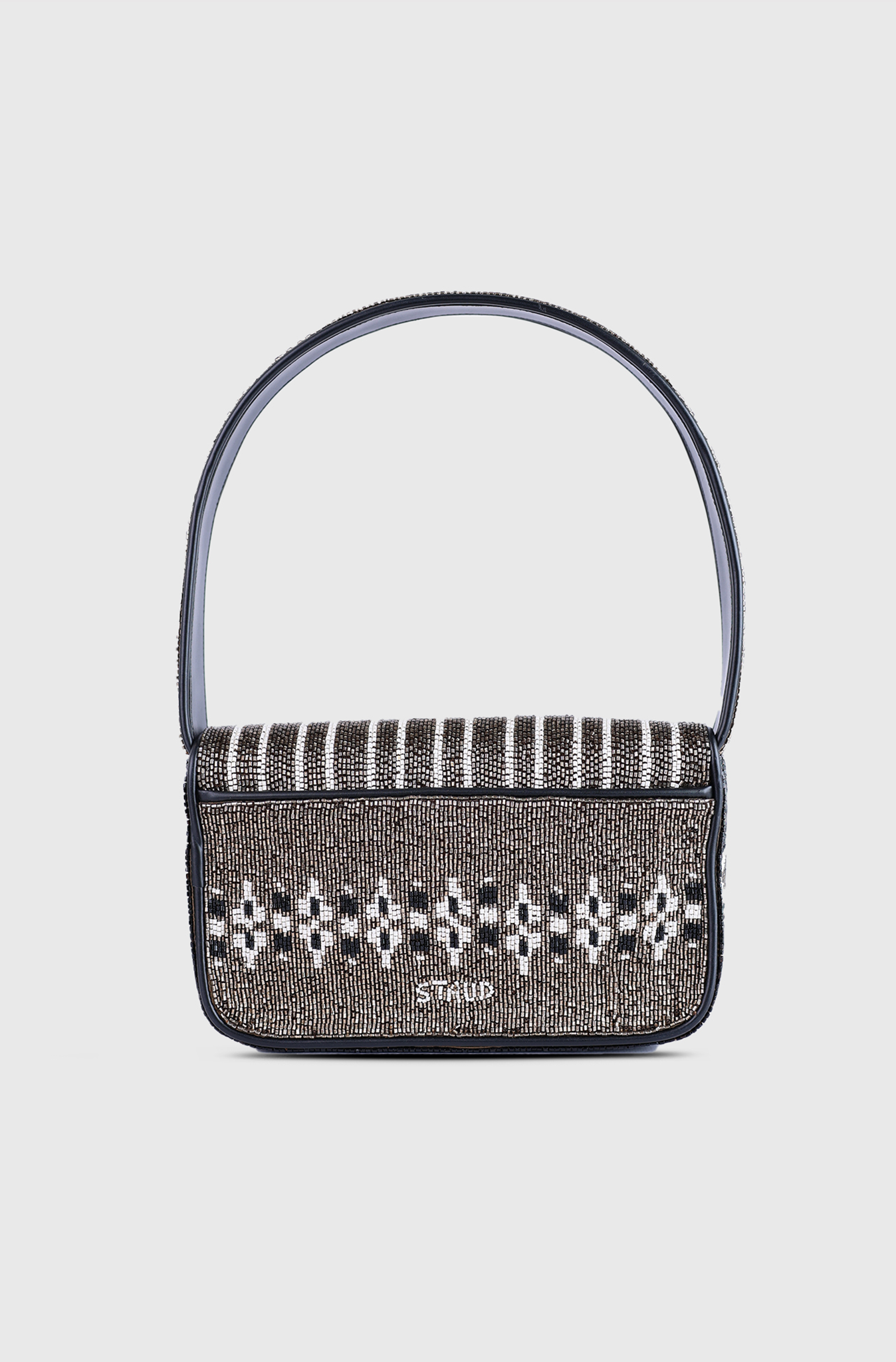Tommy Beaded Bag Zermatt by Staud, hand-beaded shoulder bag gets a celestial update with a new constellation pattern. Designed to match our signature style, the Tommy features sleek vegan leather piping, a secure magnetic snap closure, and a luxurious interior lined in satin.