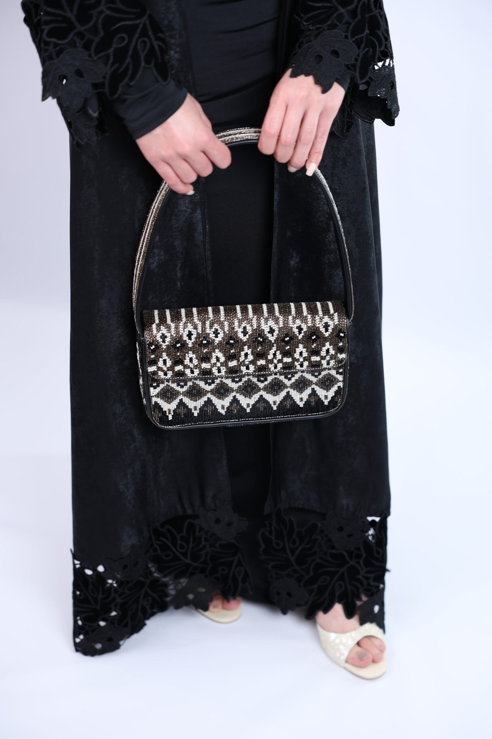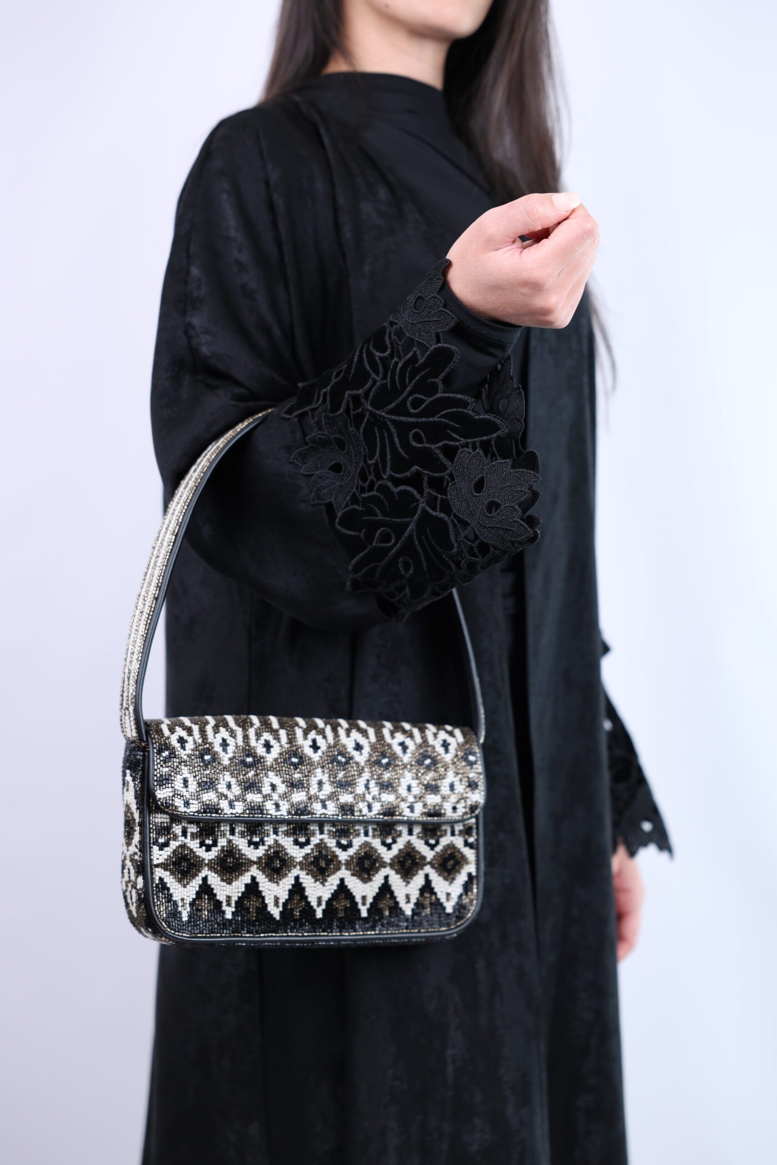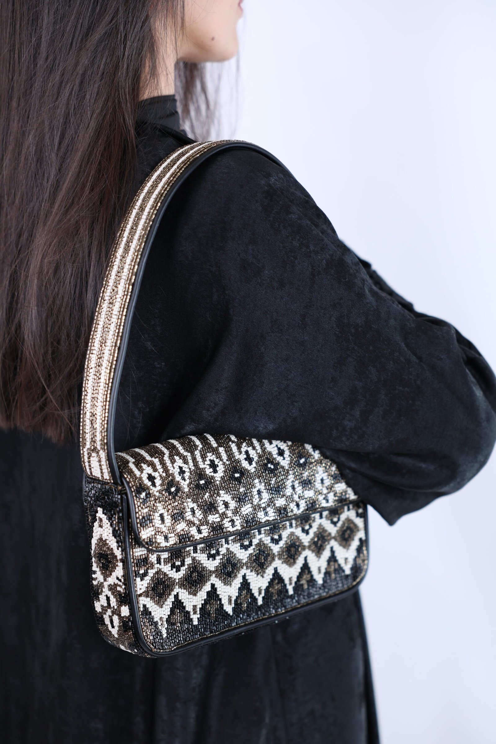 Made From: Beaded Vegan Leather Shoulder Bag Upper: 100% Glass Beads; Base: 100% Rayon; Trim: 100% Polyurethane
