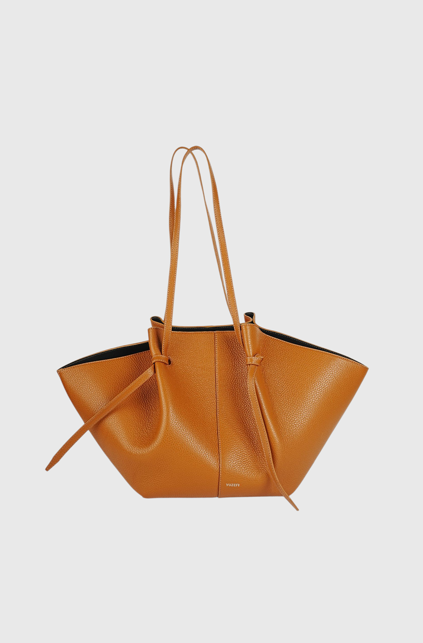 The Large Mochi Pebble Grain tote bag by YUZEFI is exceptionally versatile, offering a classic silhouette and a minimalistic design. It features adjustable signature knot straps and is spacious enough to accommodate a 14″ laptop, effortlessly complementing any outfit. Hand crafted in Spain.