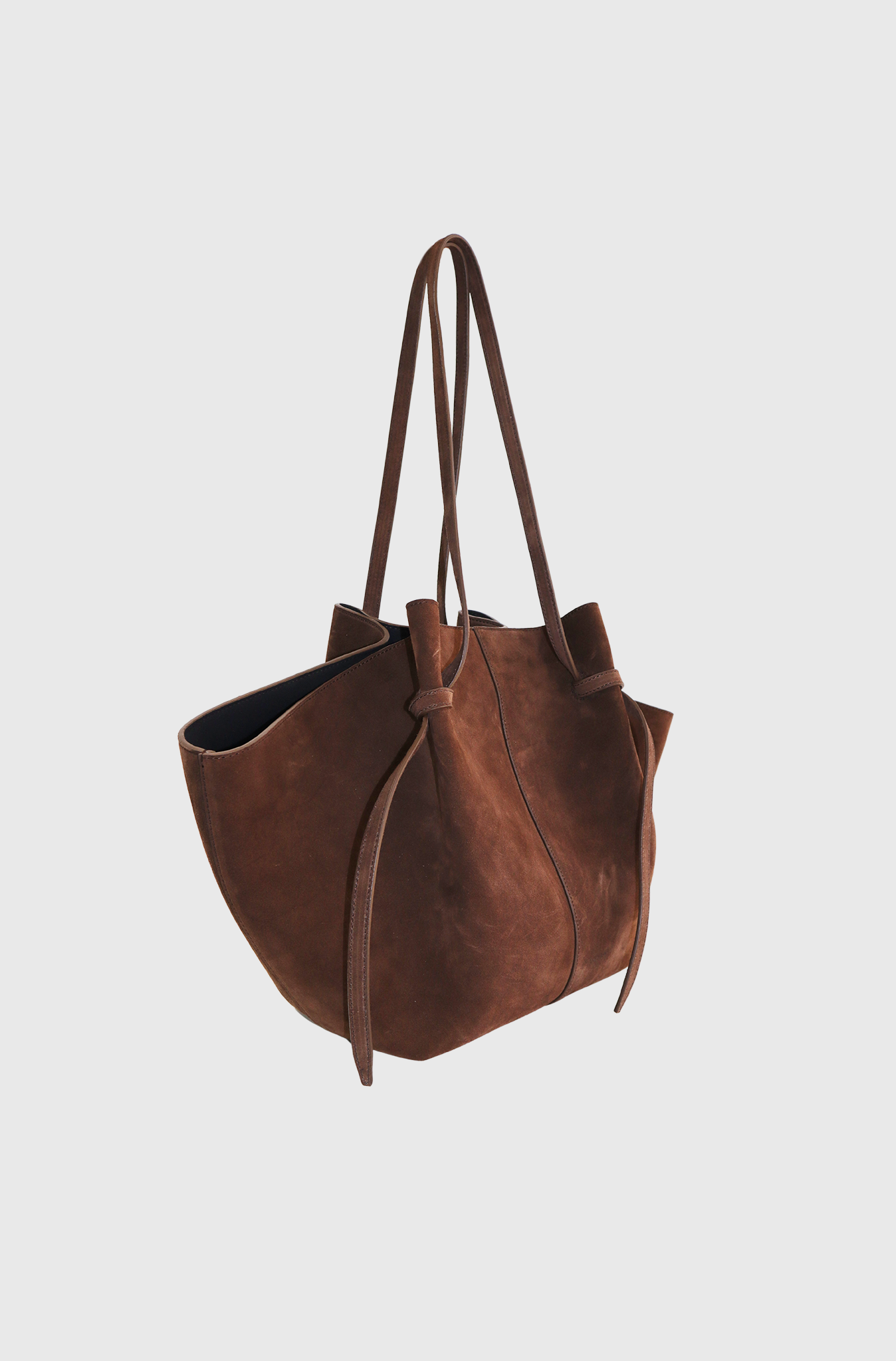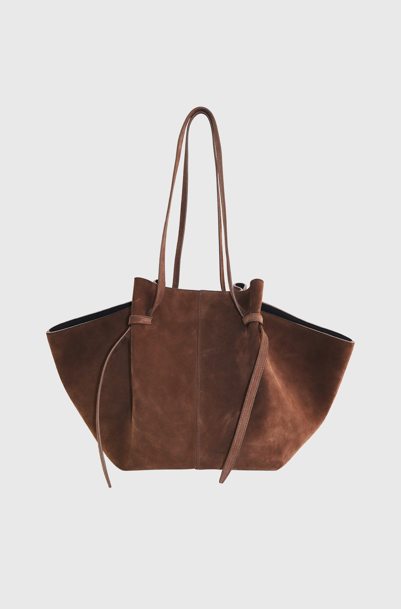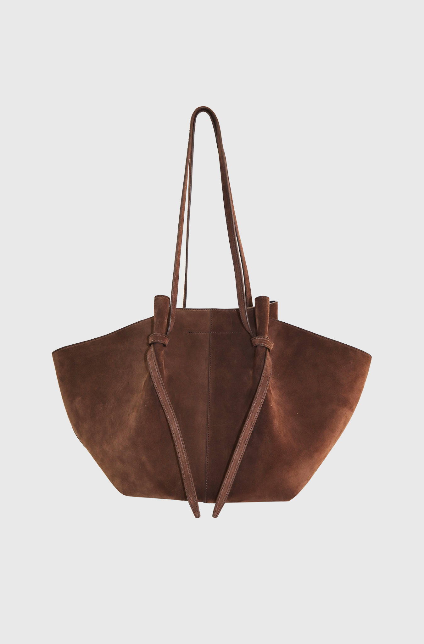 The Yuzefi Large Mochi tote bag is an elevated everyday essential bag. This bag features distinctive organic curves, elegant folds, and unique knots. Crafted from luxurious Italian chocolate suede, the Large Mochi is handcrafted to the highest luxury standards by skilled artisans in Spain. It fits all daily essentials, including laptops up to 13 inches. It also features an adjustable strap with a signature knot that can be loosened to extend the strap, a magnetic closure, and gold-tone hardware.