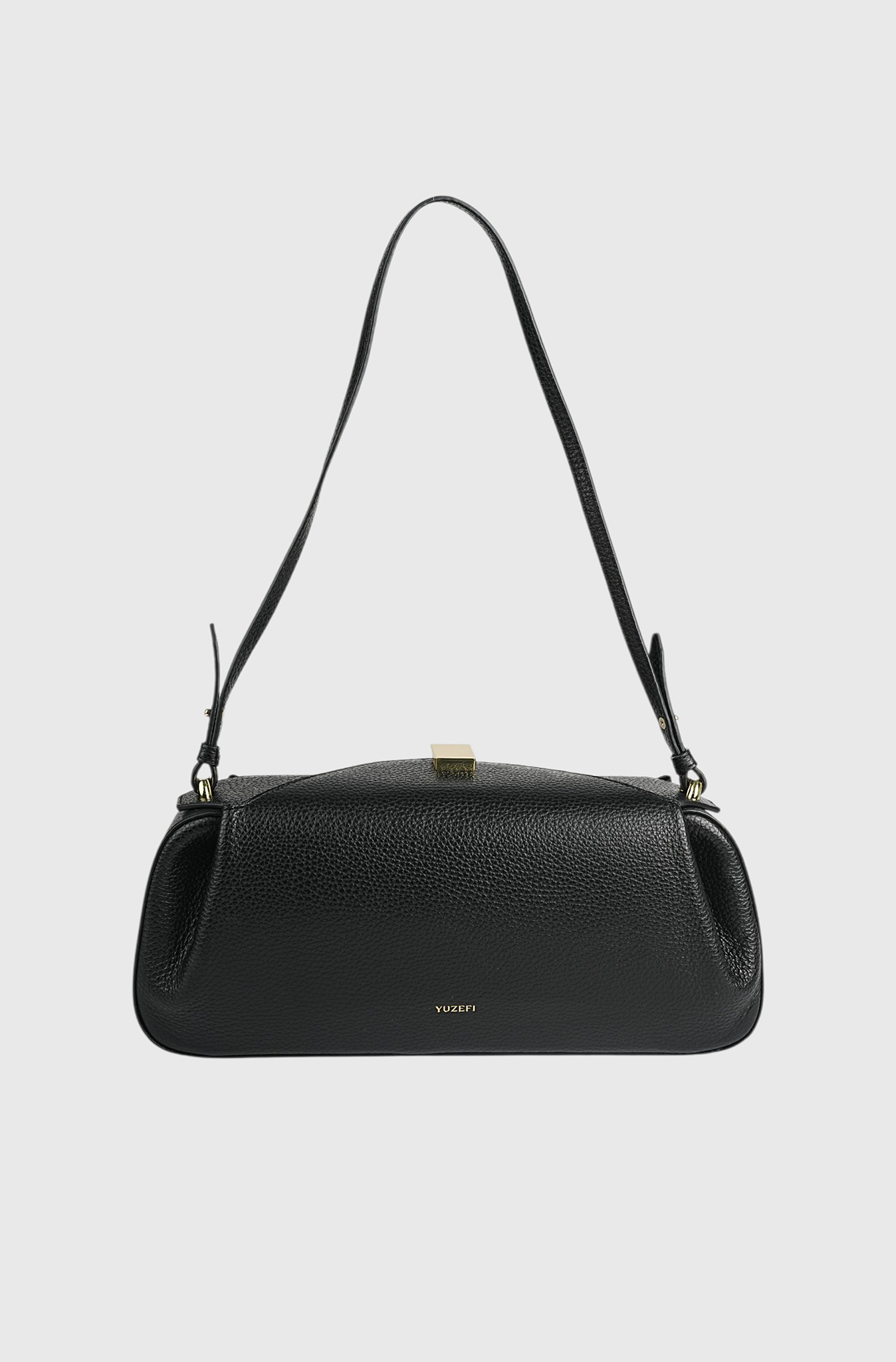 The Yuzefi Oyster Clutch, handcrafted in Spain, is made from premium Italian pebble-grained leather with gold-tone hardware. It includes removable and adjustable gold-tone chain and leather straps. This clutch is spacious enough for daily essentials like your phone, keys, and wallet, and secures with a magnet closure.