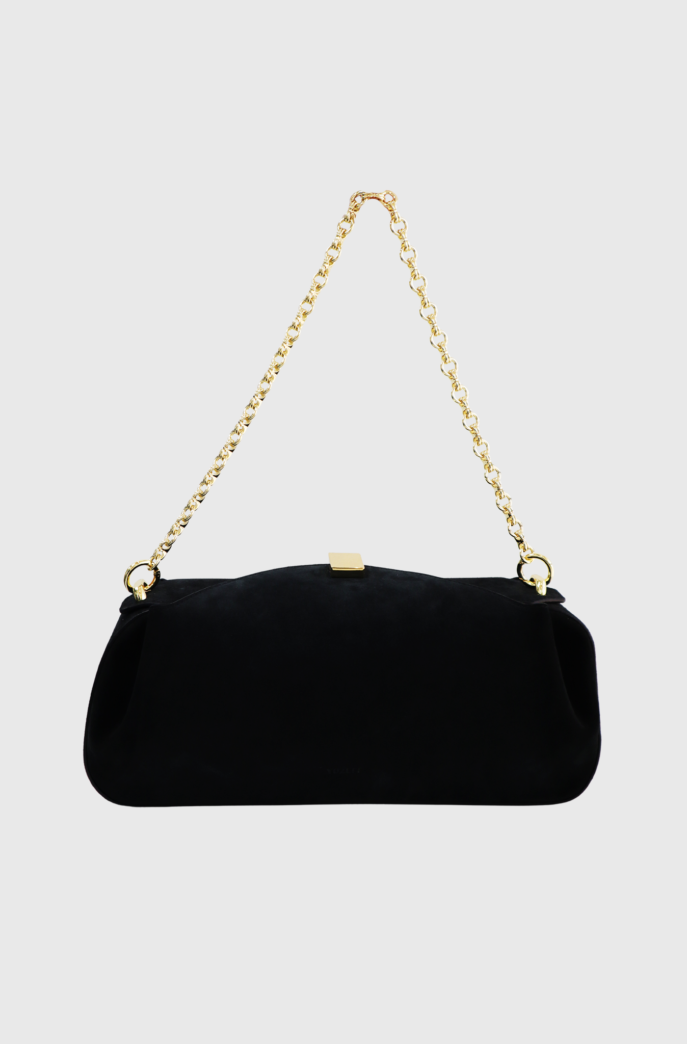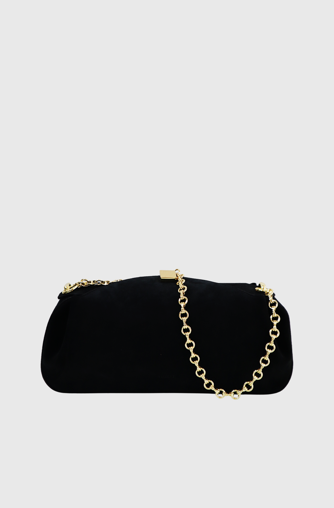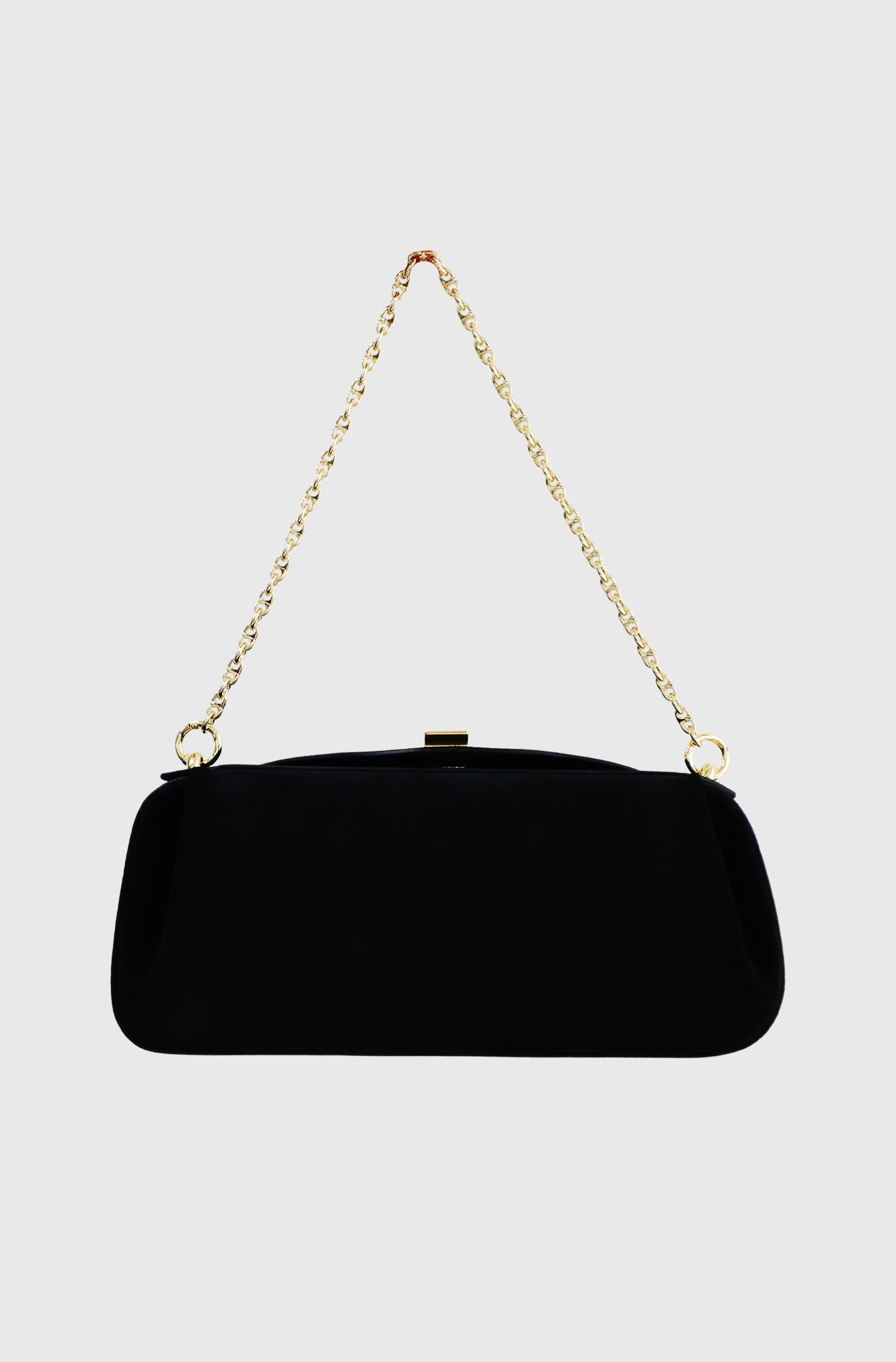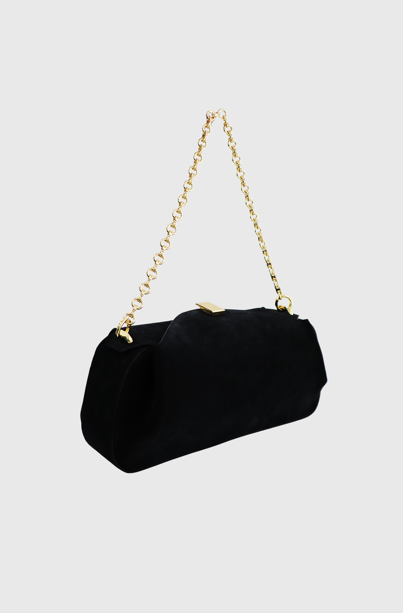 The Yuzefi Oyster Clutch is crafted from premium Italian suede with gold-tone hardware. It can be styled with either a gold-tone chain or a leather strap. Handcrafted in Spain to luxury standards, this clutch fits all daily essentials like your phone, keys, and wallet. It features an adjustable leather strap, a removable chain handle, and a magnet closure.